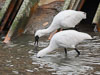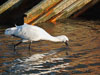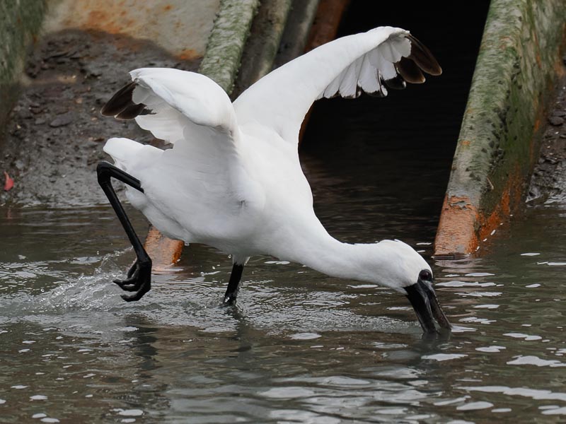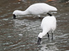 | 11月になってこの秋以降、和白干潟で初めて出会いのクロツラヘラサギです。 出会った場所は堤防更新工事のなんとすぐ近く、10数メートル先では重機が大きな音を出して工事中でした。お食事最優先の若鳥です。 クロツラヘラサギ:全長約80cm |