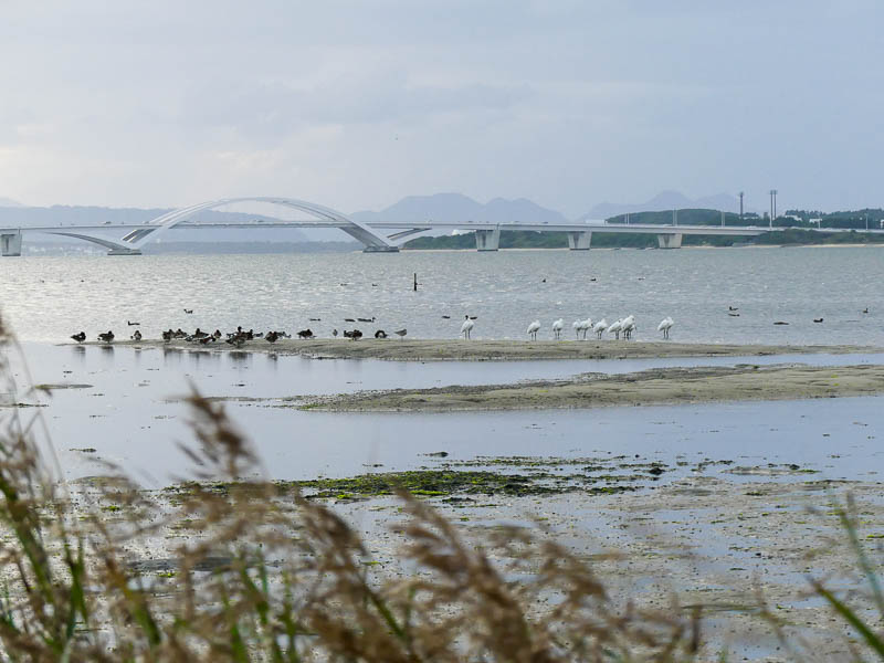| 和白側での水鳥観察は、潮が適度に引いたくらいがちょうどよさそうです。潮が満ちてくるのをじっと待つのもありですね。満ちるのに合わせて鳥が近づいてきます。 | |