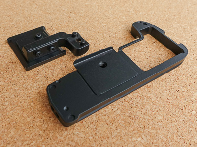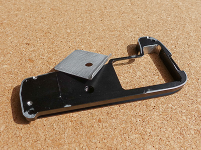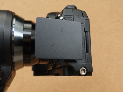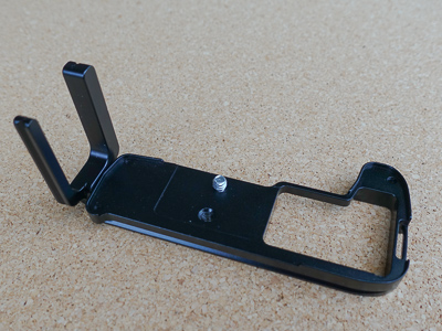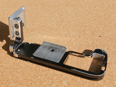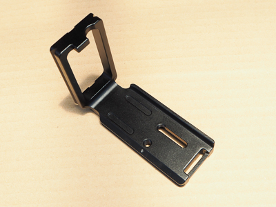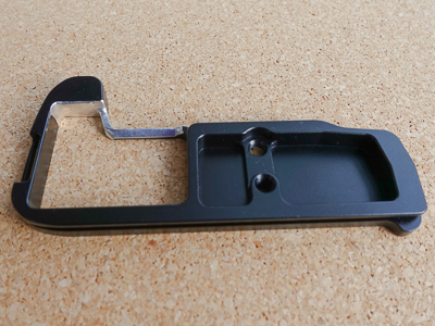 購入したL型プレートの側面部分のプレートです。このまま使うとカメラの液晶モニターを180度開くことはできません。 |