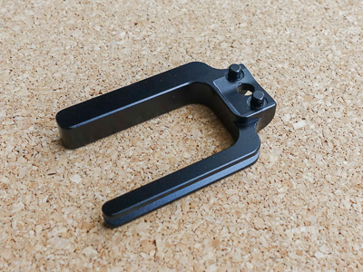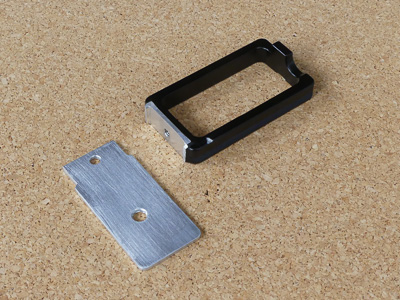 | 干渉する立ち上がり部分の隅の角のR部分を削りました。プレートの右側にはピークデザインのストラップ用アンカーを取り付けるための細工をしました。 | |