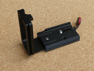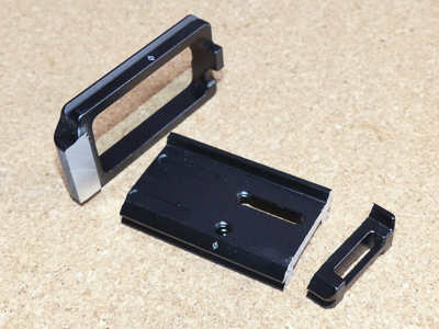 | 照準器取り付けに利用できるプレートがOM-D-E-M1 MarkⅡ、MarkⅢにはあり、購入することもできました。しかし、OM-1用専用Ⅼ型プレートの市販品は2022年6月時点ではまだありません。全て自作のⅬ型プレートでも目的は果たせますが、軽さとスマートさでは市販品にはかないません。そこでOM-1用に利用できそうなプレートを探しました。条件は、①カメラネジ穴が2つ、縦に並んで用意されていること、②前方に立ち上がり部分があること(回転防止のため)、③安いこと、です。 | |