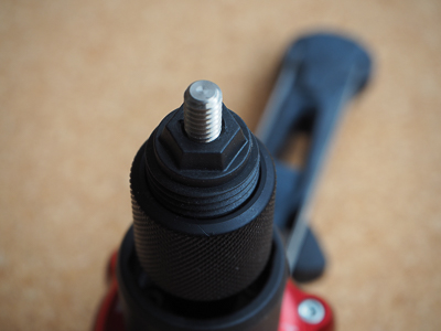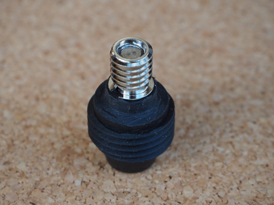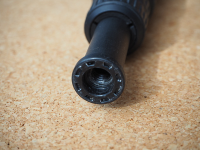 | 黒い樹脂製パーツの六角形状の角部分を削り、丸形状に整えます。ここを失敗すると大変なので丁寧に仕上げます。 別途に用意した、カメラネジ変換アダプター(エツミE6663など)で付属細ネジを太ネジ仕様に変換します。 |