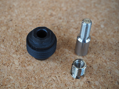 GITZO一脚の先端に合う形状に細工したパーツ一式。 |