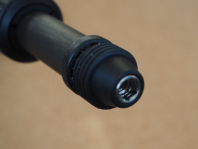 GITZO一脚の先端は丸形状の筒にカメラ太ネジをねじ込む構造です。 |